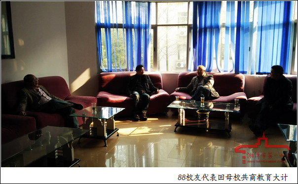3月14日,88校友代表李星星教授回母校就“88校友基金”及潭中發(fā)展等問題與校領(lǐng)導(dǎo)座談,校長唐新建,黨委書記黃睿以及分管德育副校長唐亞文在坐。唐新建校長向李教授介紹了學(xué)校發(fā)展的新思路、新舉措、新氣象,對(duì)廣大校友關(guān)心、支持學(xué)校工作與發(fā)展表示感謝,唐校長高度贊揚(yáng)了88校友長期以來對(duì)學(xué)校發(fā)展的關(guān)心,對(duì)潭中學(xué)子的關(guān)愛,對(duì)“88校友基金”今后的發(fā)展提出了建議。李星星教授向?qū)W校領(lǐng)導(dǎo)介紹了“88校友基金”今后發(fā)展的打算,對(duì)學(xué)校的發(fā)展提出了富有建設(shè)性的建議。